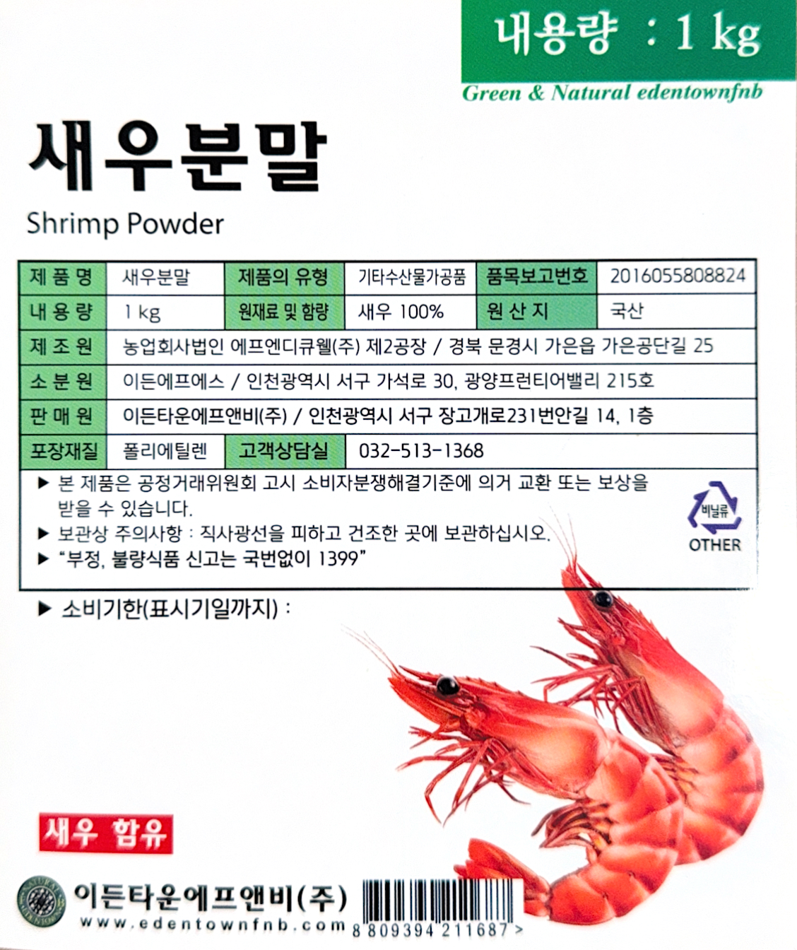 이든타운 새우분말(외식전용 1Kg/EA)