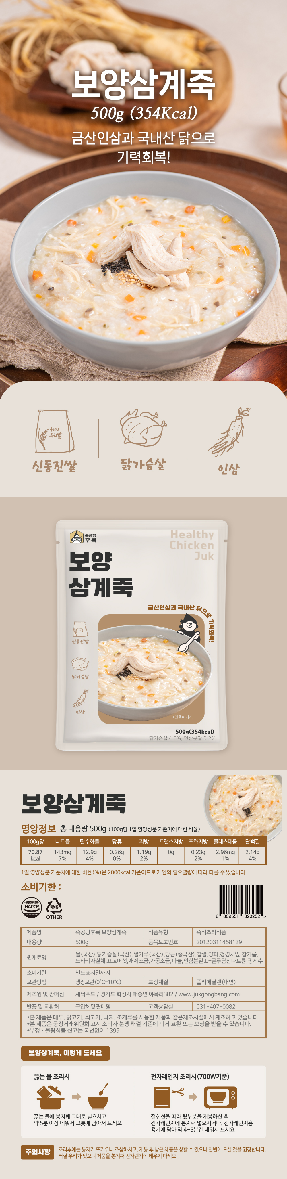 죽공방후룩 보양 삼계죽 500g_냉장 간편식 식사대용 영양식 건강식