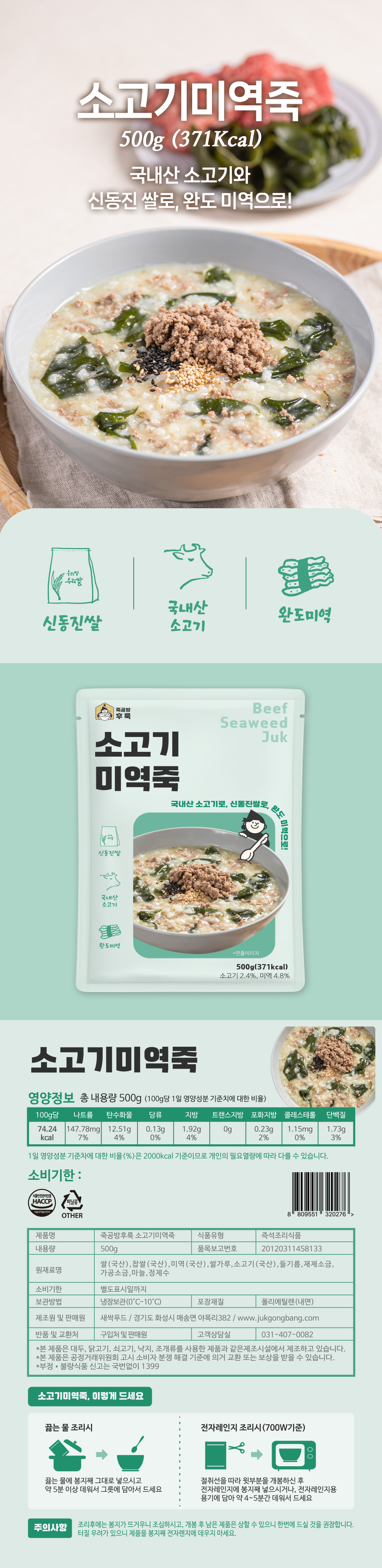 죽공방후룩 소고기 미역죽 500g_냉장 간편식 식사대용 영양식 건강식