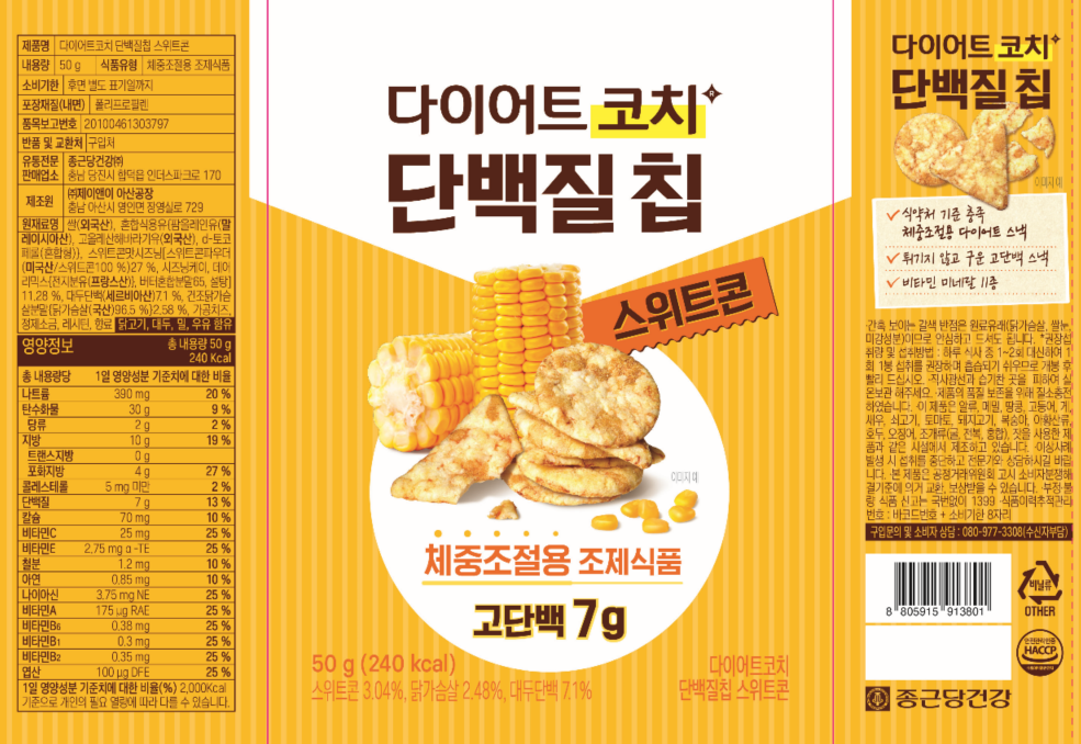 종근당건강 다이어트코치단백질칩(스위트콘 50g/EA) 이미지