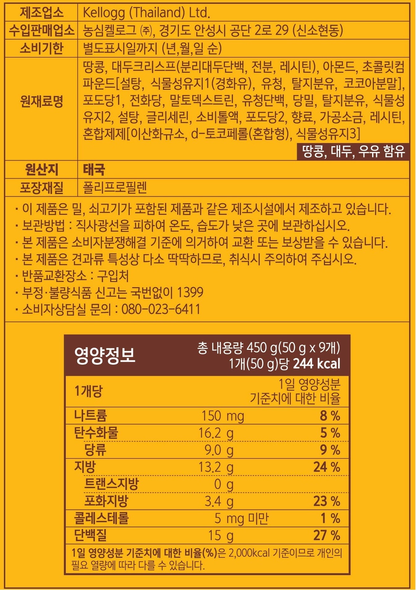켈로그 단백질바K(50g*9개입 450g/EA)