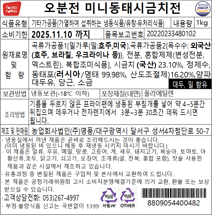 영풍 동태시금치전(NEW_20g*50±4입 1Kg/EA)