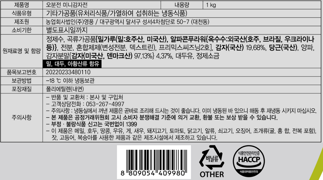 오분전 미니감자전(NEW_20g*50±4입 1Kg/EA)