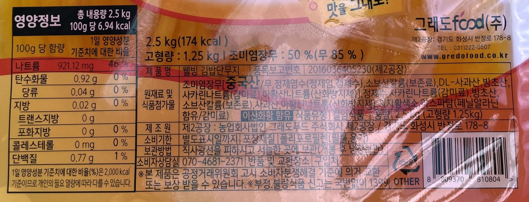 웰빙 단무지(6mm 꼬마김밥용 2.5Kg/EA)
