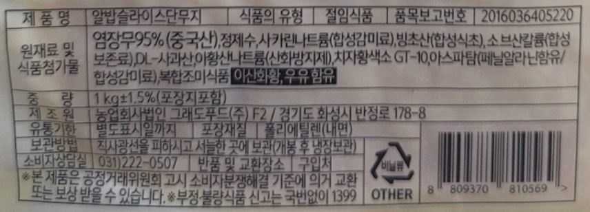 웰빙 알밥슬라이스단무지(다진것 1Kg/EA)