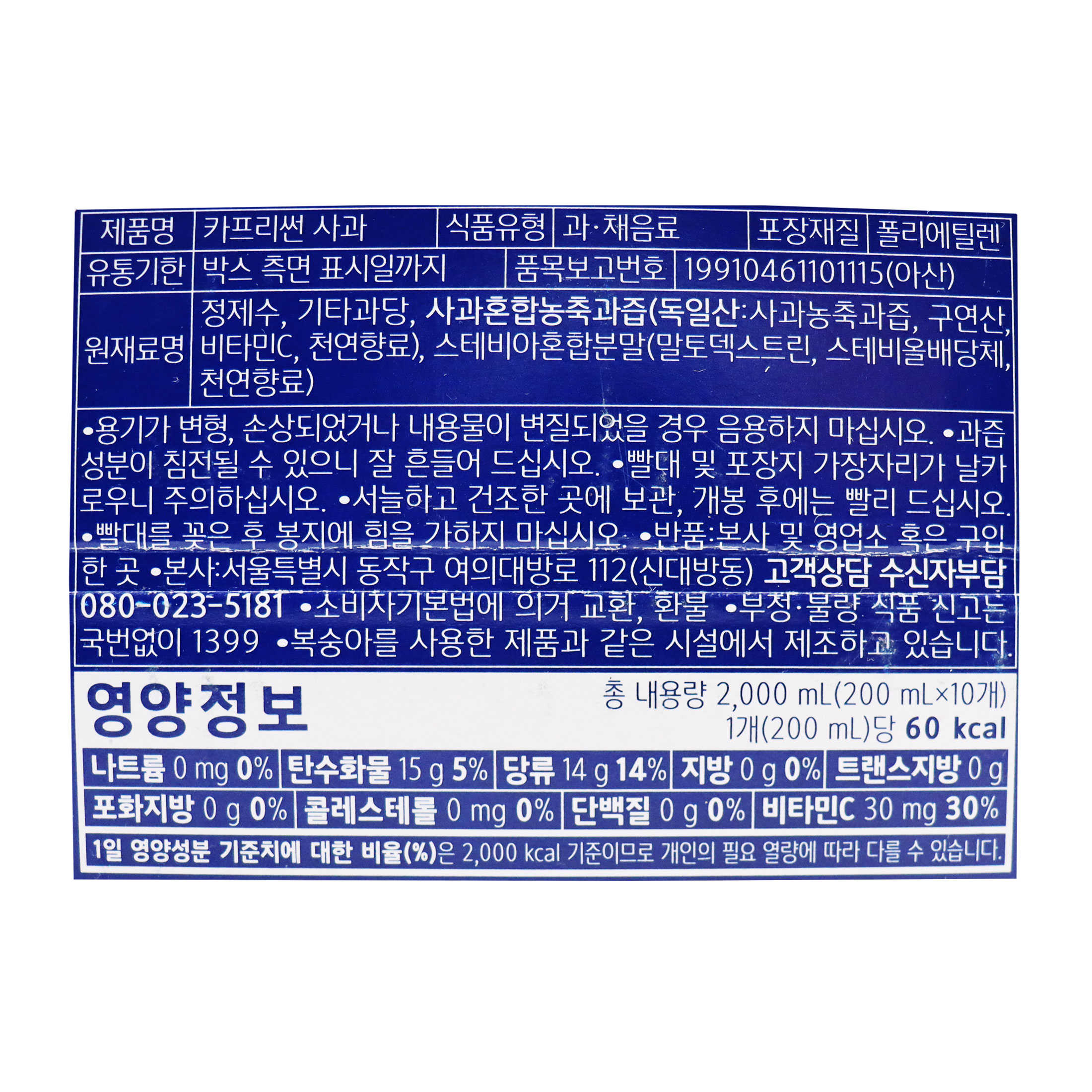 농심 카프리썬(200ml_사과 200g/EA)