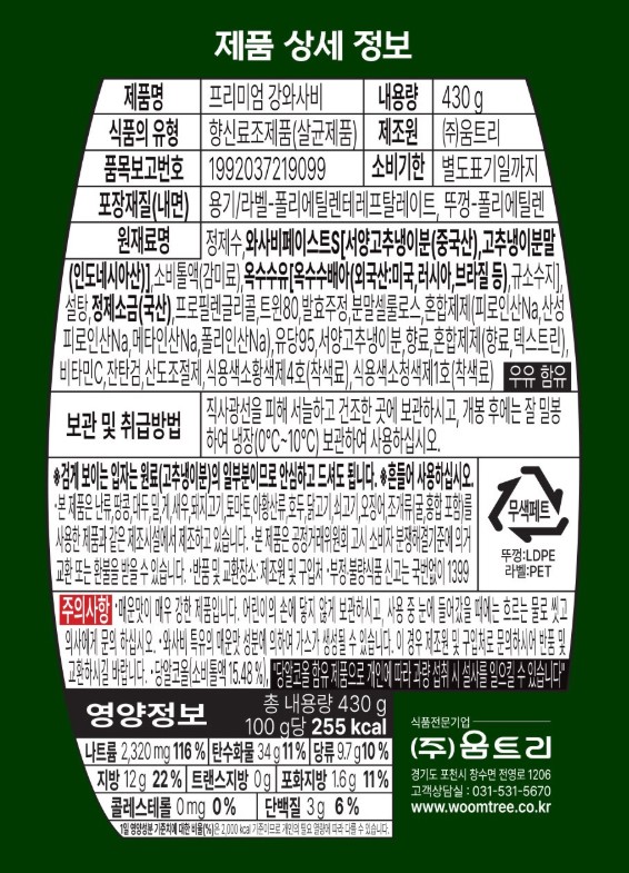 움트리 프리미엄강와사비(430g/EA) 이미지