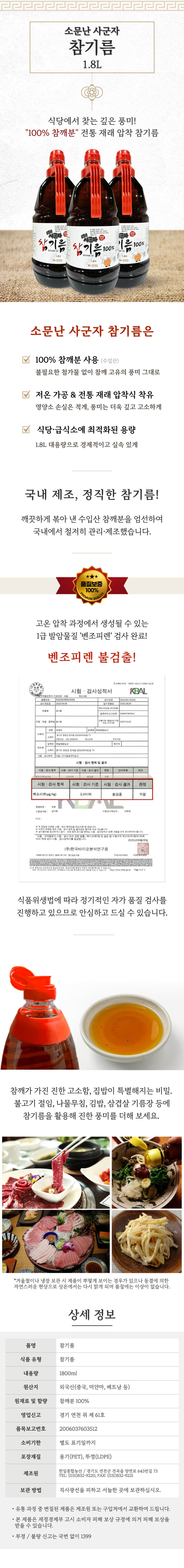 소문난 참기름 100% 1.8L 사군자 참깨분 이미지