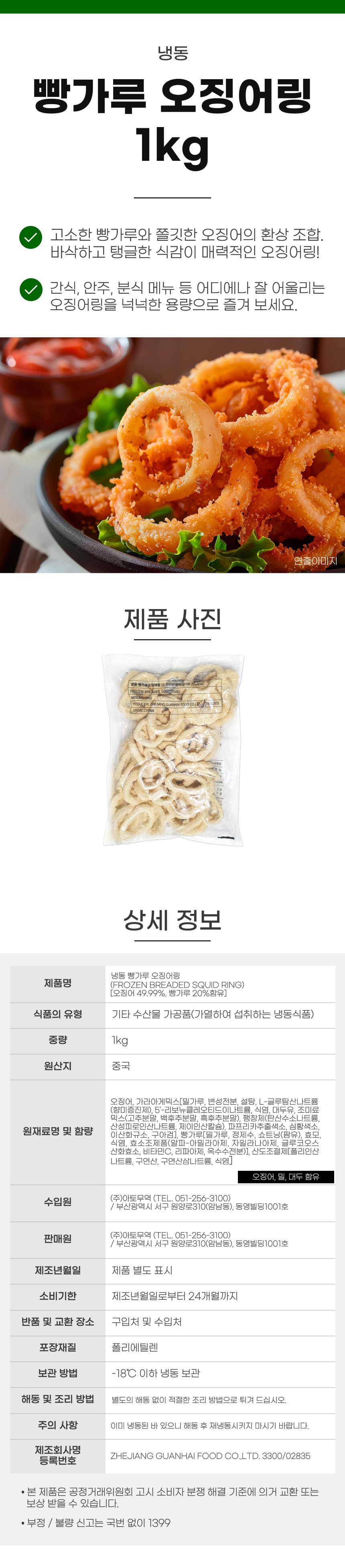 빵가루 오징어링 1kg 냉동 오징어 튀김