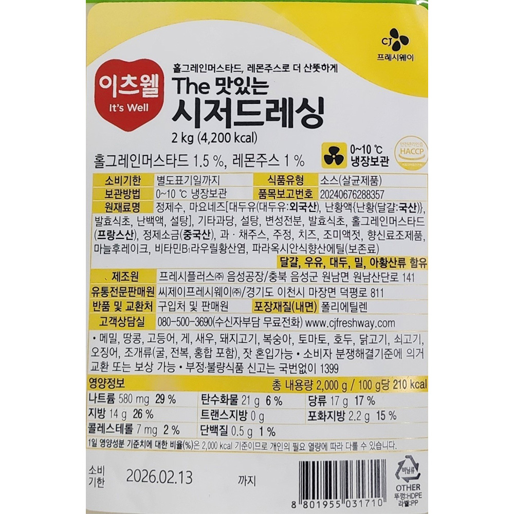 이츠웰 시저드레싱(The맛있는 2Kg/EA)