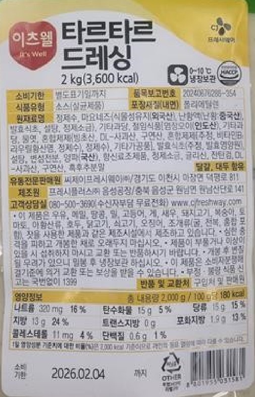 이츠웰 타르타르드레싱(2Kg/EA) 이미지