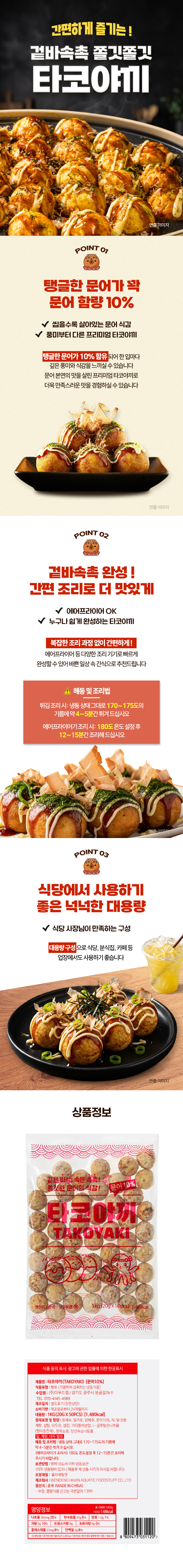 ★초특가★ 지엔씨푸드 타코야끼 1kg (20g*50알) 타코야키 대용량 업소용 이미지