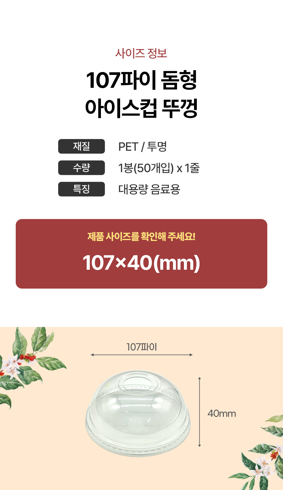 ★초특가★ 아이스컵 107파이 투명컵 리드 돔형 50개 아이스컵 뚜껑 카페용 업소용 베이커리용