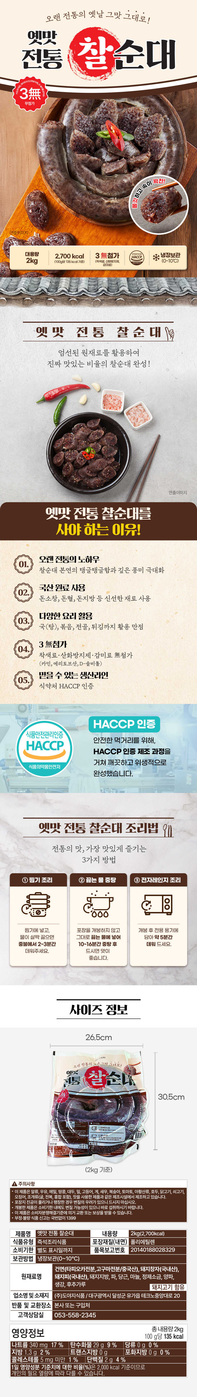 ★초특가★ 옛맛 전통 찰순대 2Kg 대용량 업소용 순대 이미지