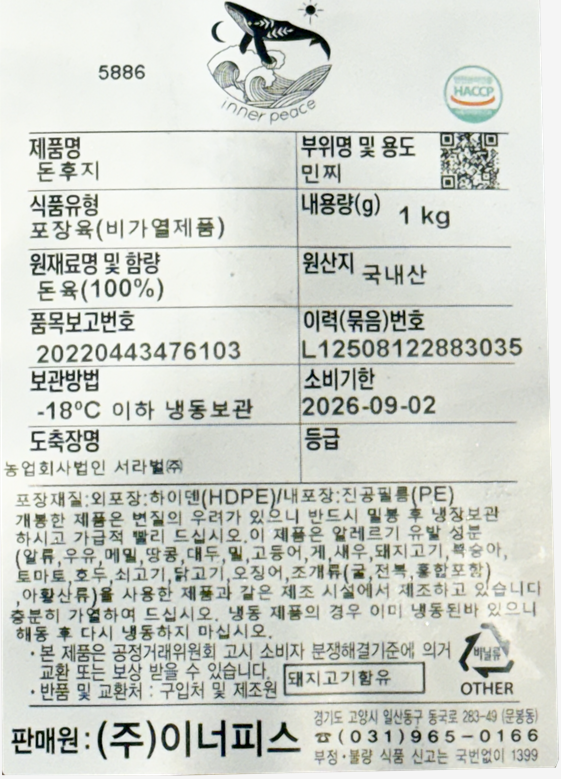 국내산 민찌 1kg 냉동 후지100% 다짐육 돈다짐육 돼지민찌