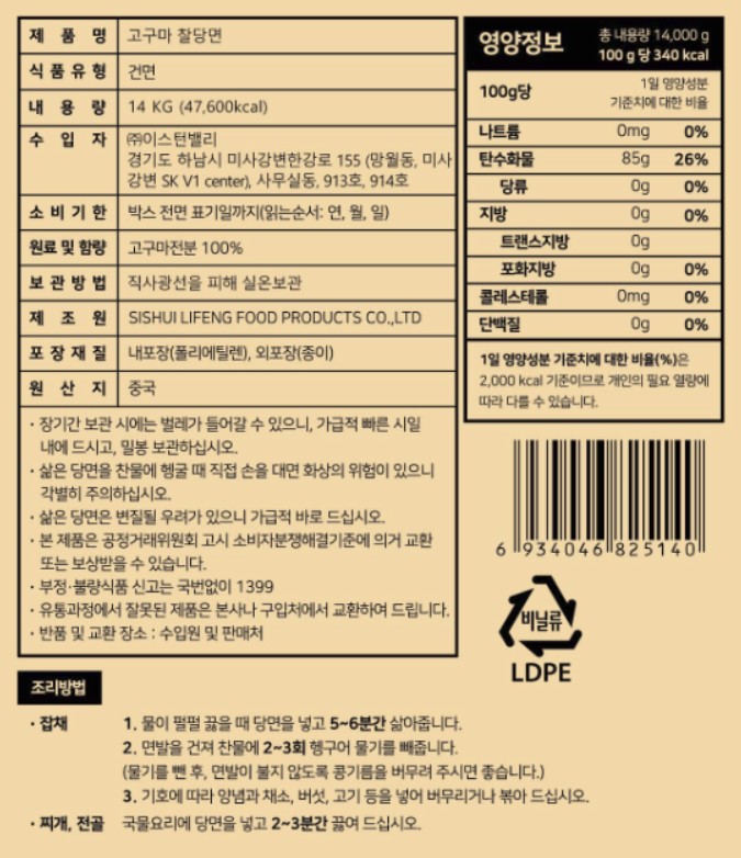 ★초특가★ 업소용 찰당면 14Kg 대용량 식당용 실속 당면 벌크