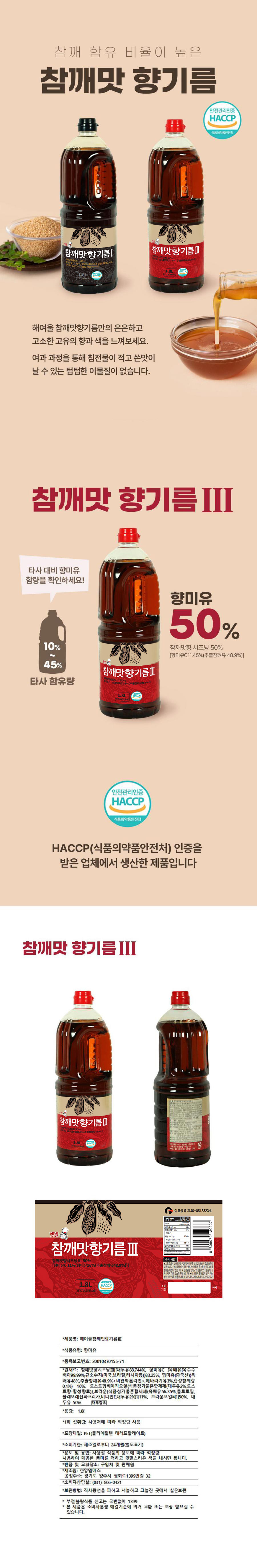 햇별 참깨맛향기름Ⅲ(1.8L 1.8Kg/EA) 이미지