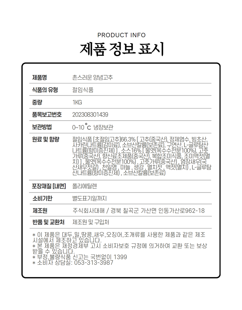 ![[여우마을 수제반찬] 업소용 양념고추무침 고추장아찌 1kg 이미지](https://content.foodspring.co.kr/vendor/4005/images/29_2581490089_r.jpg?f=webp&s=876x876&t=inside)