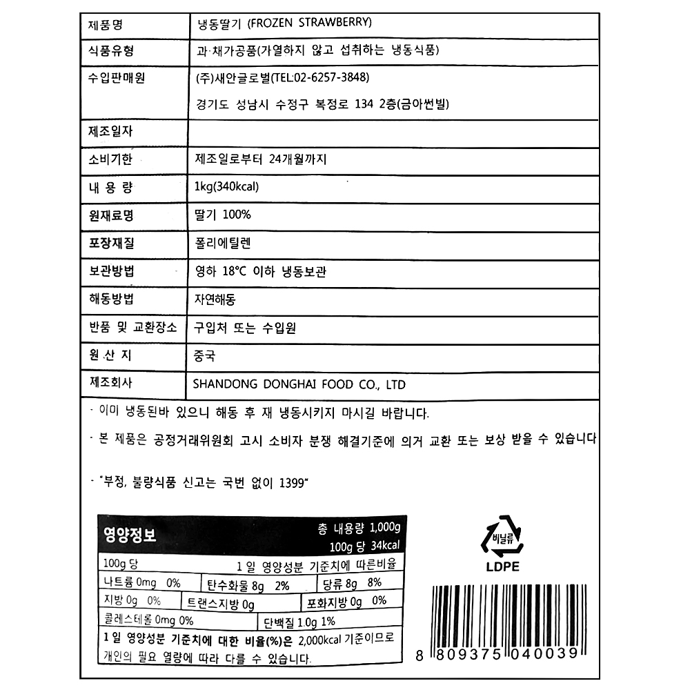 새안 냉동딸기(파우치 1Kg/EA) 이미지
