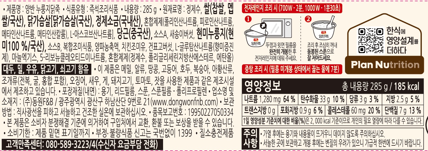 양반죽 누룽지닭죽(용기 285g/EA)