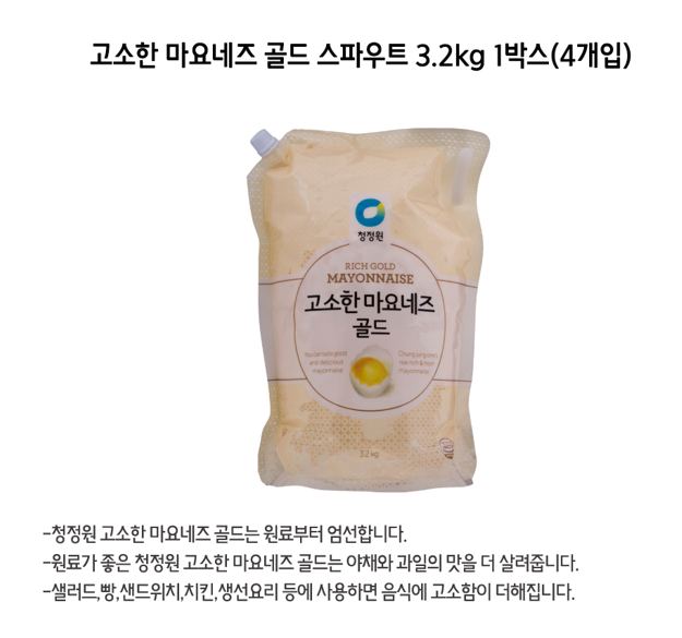 ![[박스판매] 청정원 고소한 마요네즈 스파우트 3.2kg * 4EA 이미지](https://content.foodspring.co.kr/vendor/2664/images/23_9898243380_r.jpg?f=webp&s=876x876&t=inside)