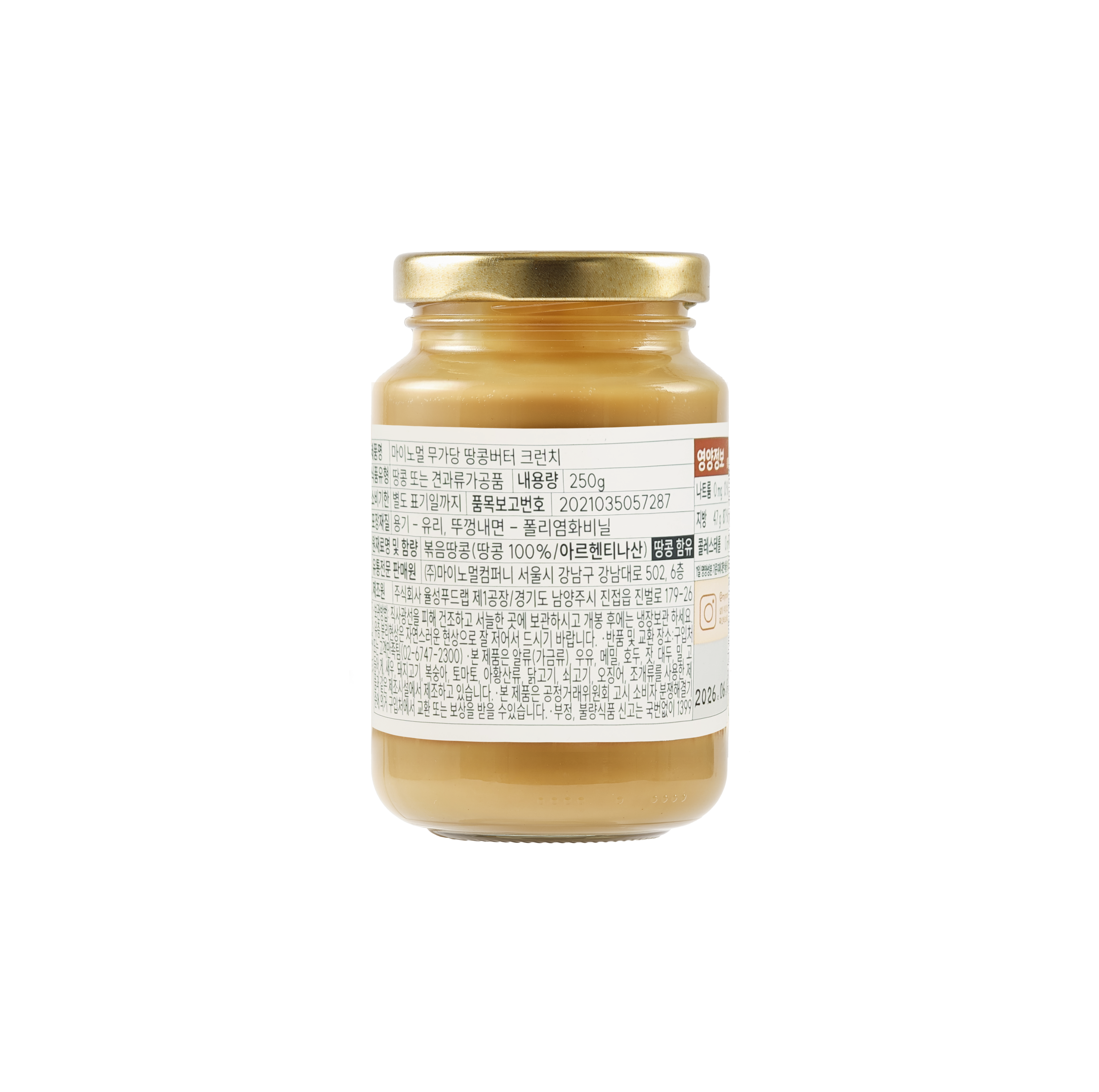 마이노멀 무가당100%땅콩버터(크런치_병 250g/EA) 이미지