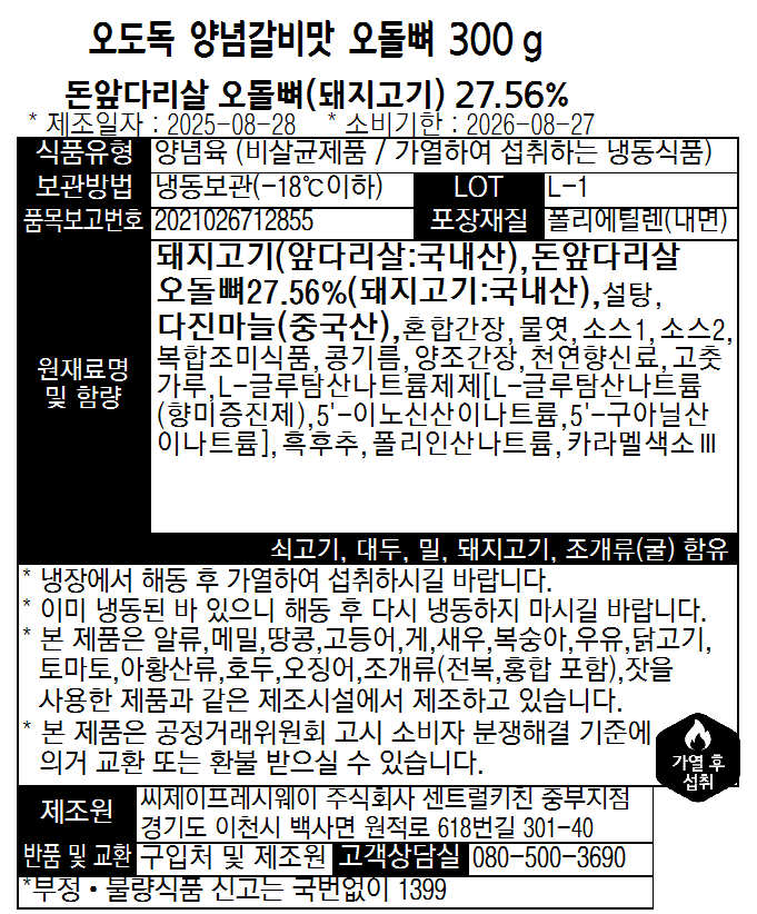 오도독 양념갈비맛 오돌뼈(육함량75% 300g/EA) 이미지