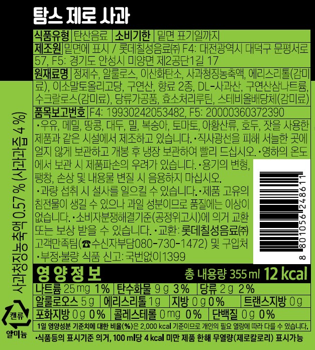 탐스 제로(355ml_사과 355g/EA) 이미지