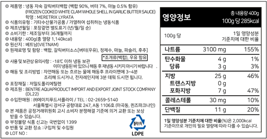 갈릭버터백합(자숙 400g/EA)