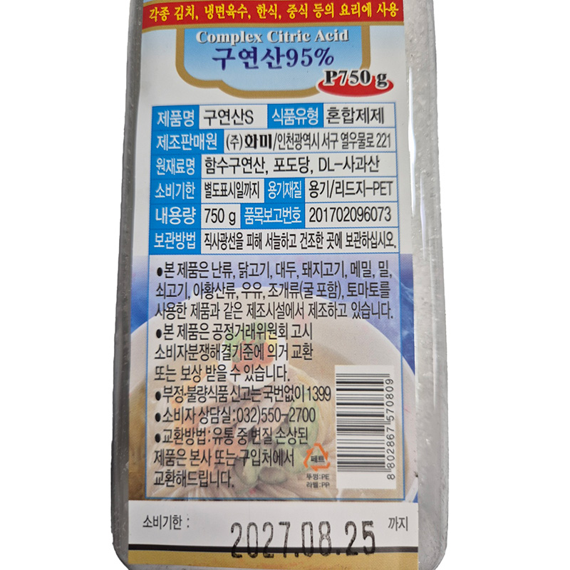 화미 구연산 S 750g/EA 이미지