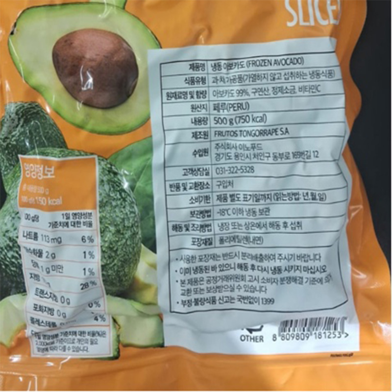 웰루츠 냉동아보카도(슬라이스 500g/EA)