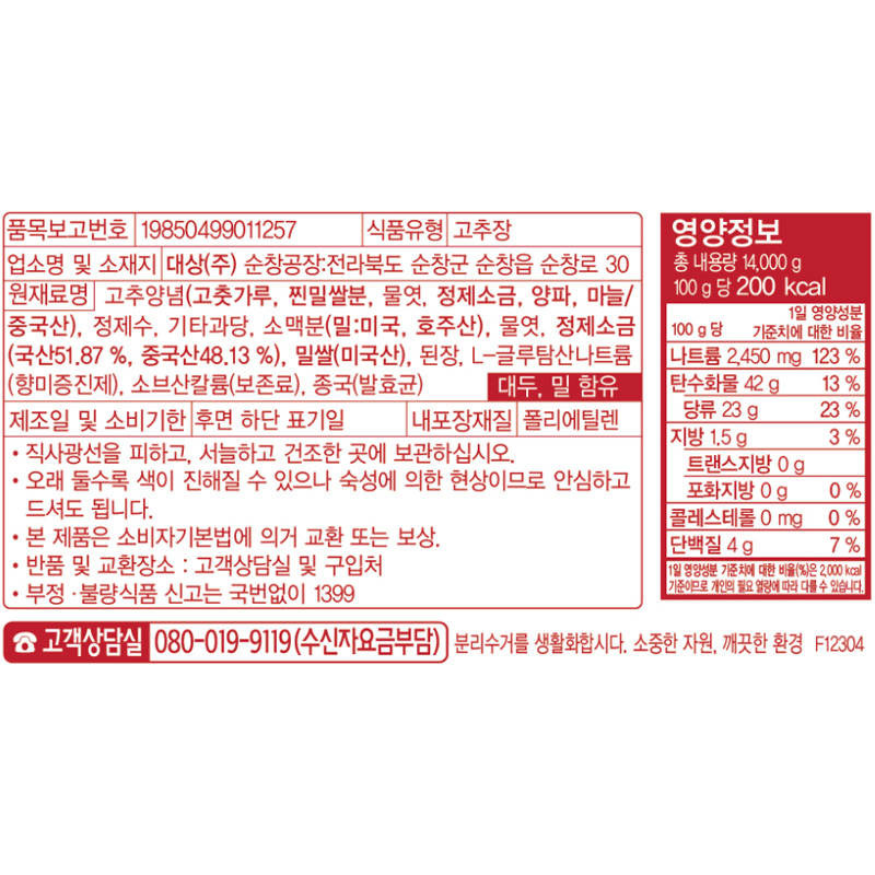 대상 고추장(참진_순창 14Kg/EA)