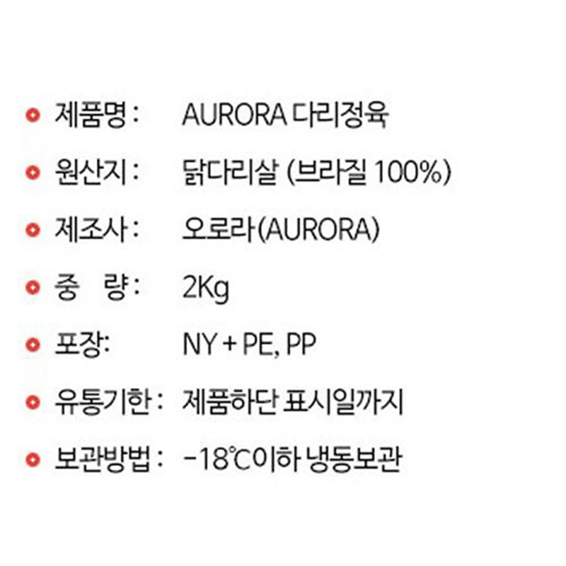 ♥정육특가♥ AURORA 브라질 닭다리살(2kg X 6개입 12Kg/BOX) 닭정육 이미지