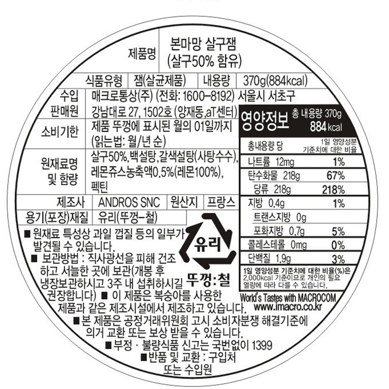 본마망 살구잼(370g/EA)