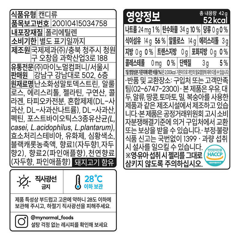 마이노멀 제로젤리(사워베어_42g*8개입 336g/EA)