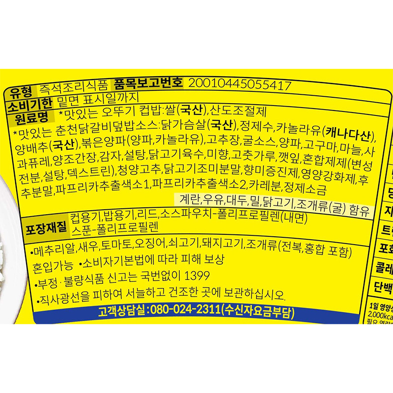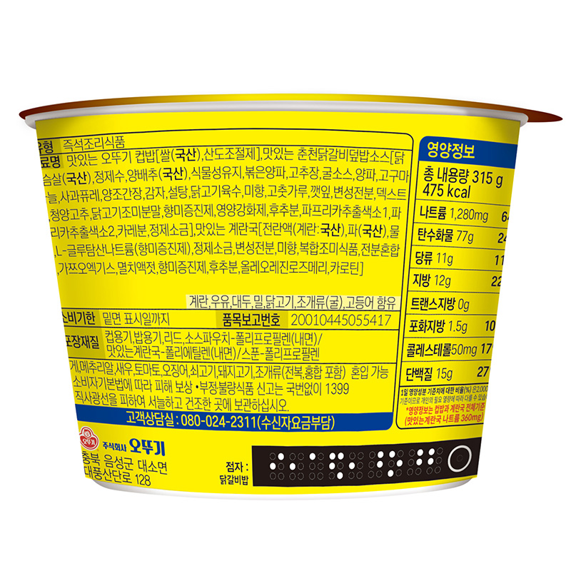 오뚜기 컵밥(춘천닭갈비덮밥_즉석국 315g/EA)