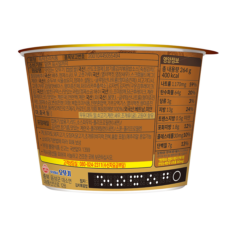 오뚜기 컵밥(참기름김치볶음밥_즉석국 264g/EA)