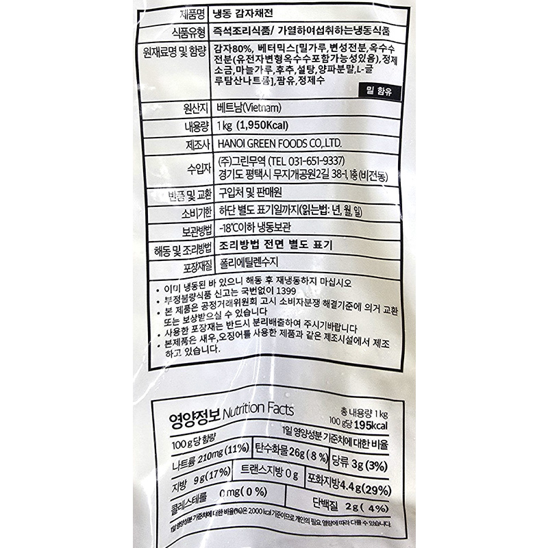 글로벌냉동 감자채전(70g*14±1입 1Kg/EA)