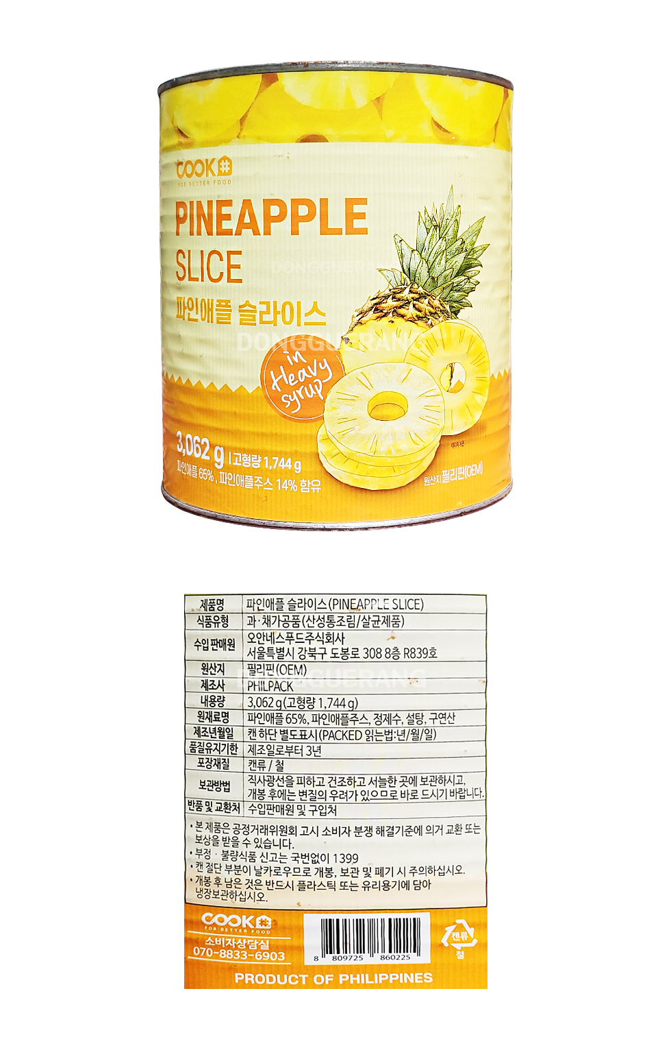 쿡샵 파인애플링 슬라이스 3kg