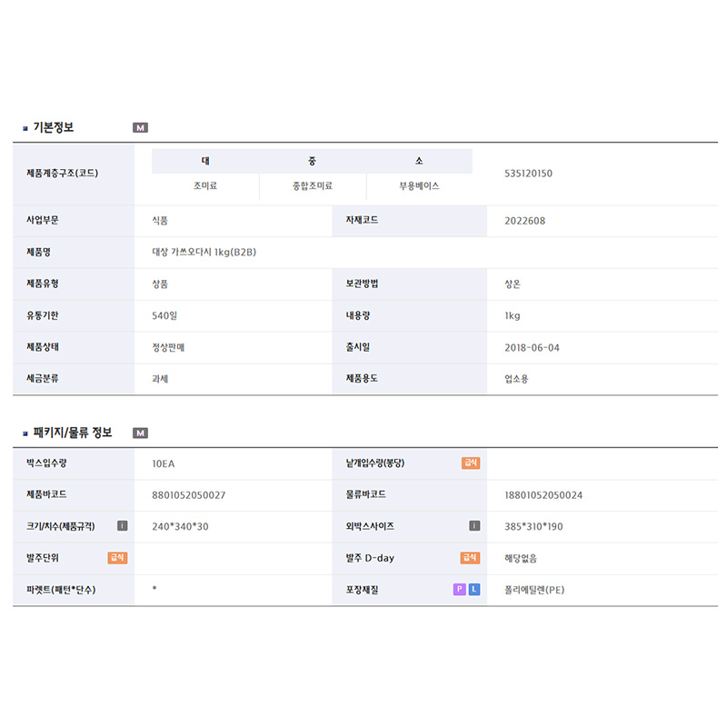 포장단위별 용량(중량)
