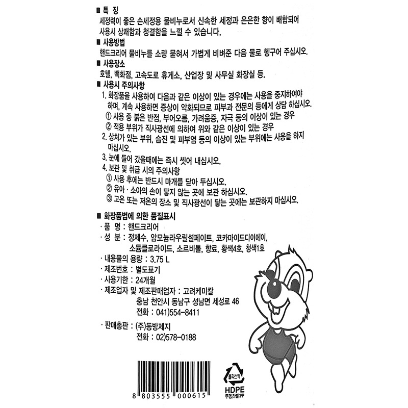 동방제지 핸드크리너(외식전용 3.75L EA) 이미지