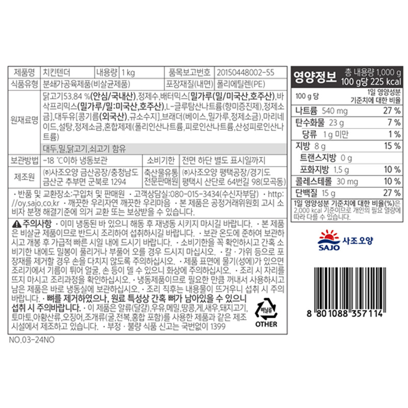 엄선_사조오양 치킨텐더(59±7g*17±2입 1Kg/EA)