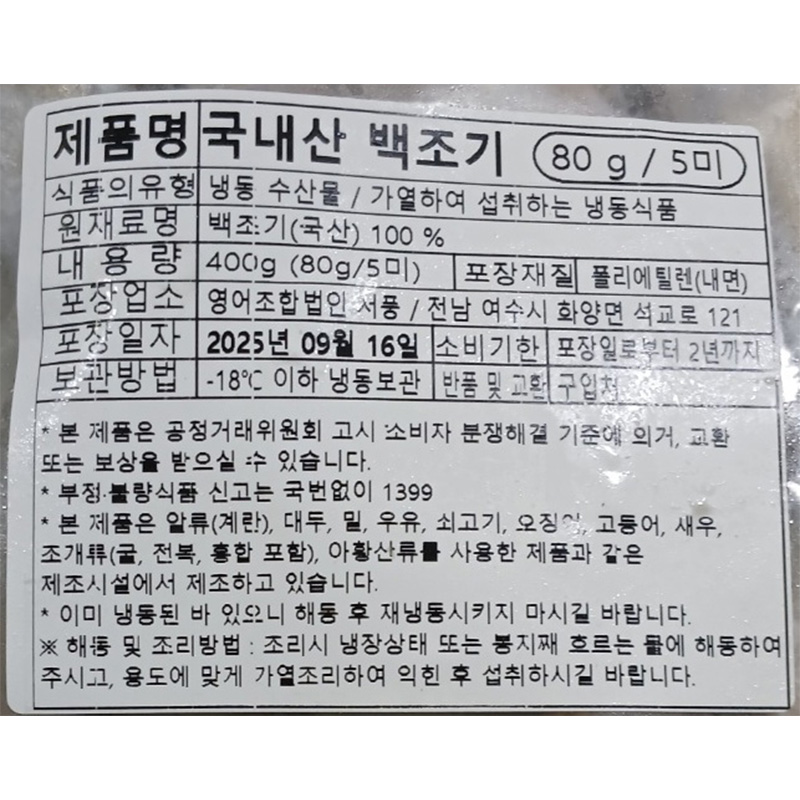 백조기(70~90g/마리_5미 400g/EA)