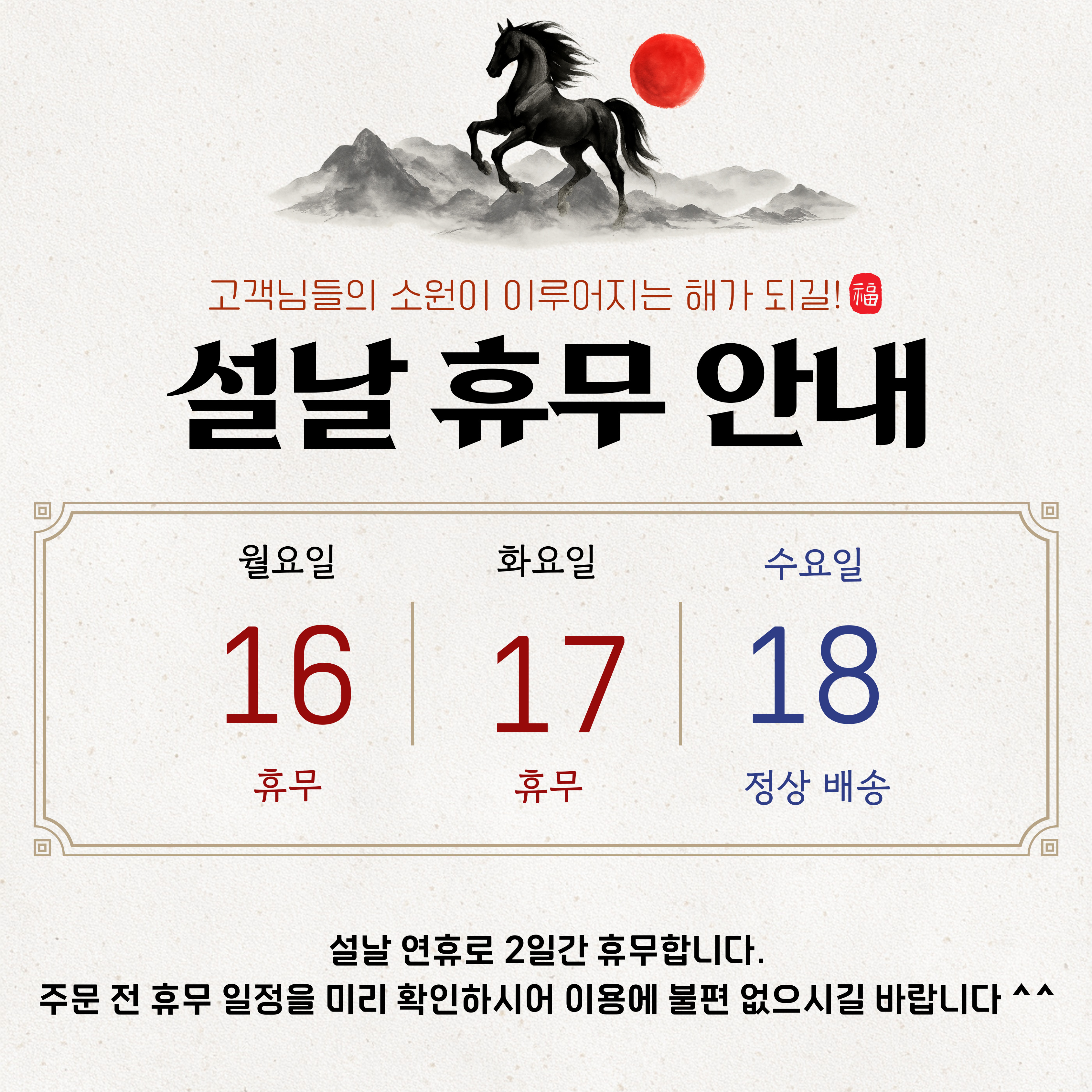 • 택배배송의 경우, 주말 및 공휴일 전일 및 당일에는 상품 발송이 어려울 수 있습니다.