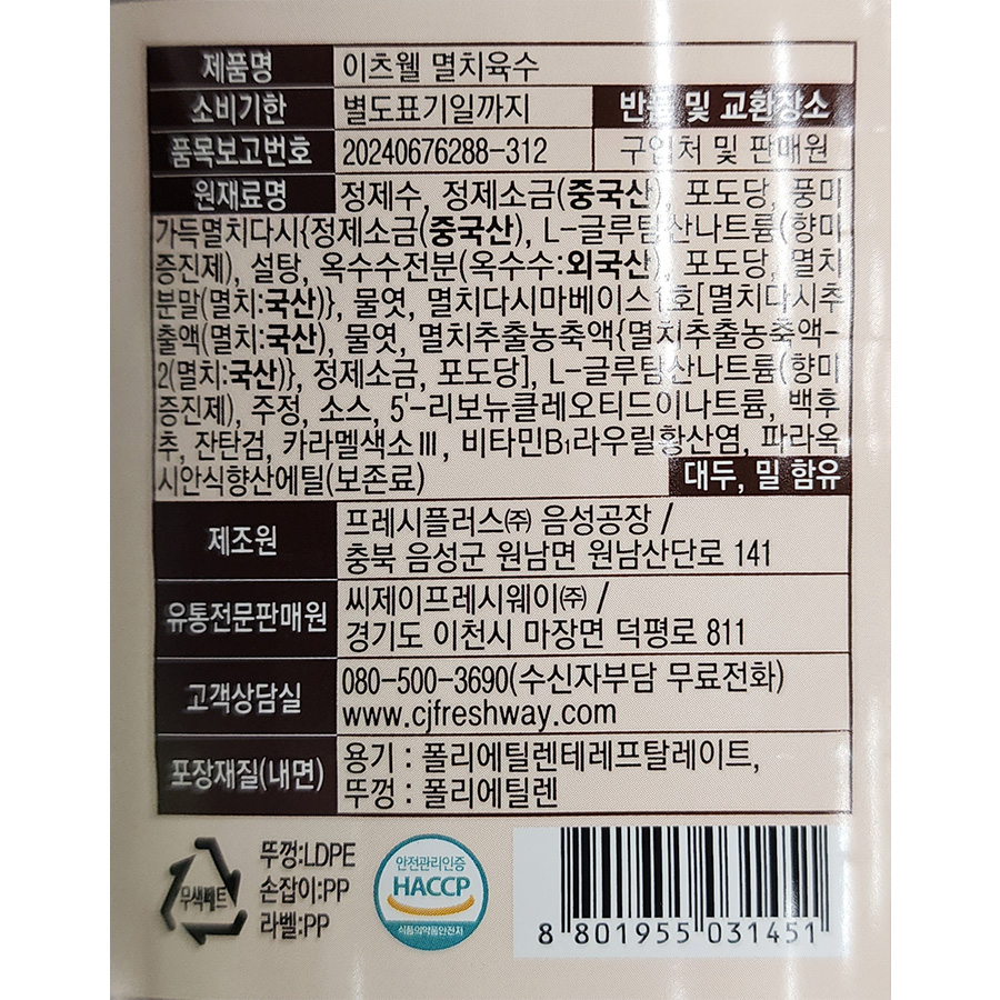이츠웰 멸치육수_밑국물(1.8L_PET 2.2Kg/EA)