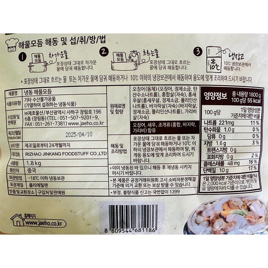 JH 해물모둠(오징어+홍합살+홍새우살+바지락살+가리비살 1.8Kg/EA)