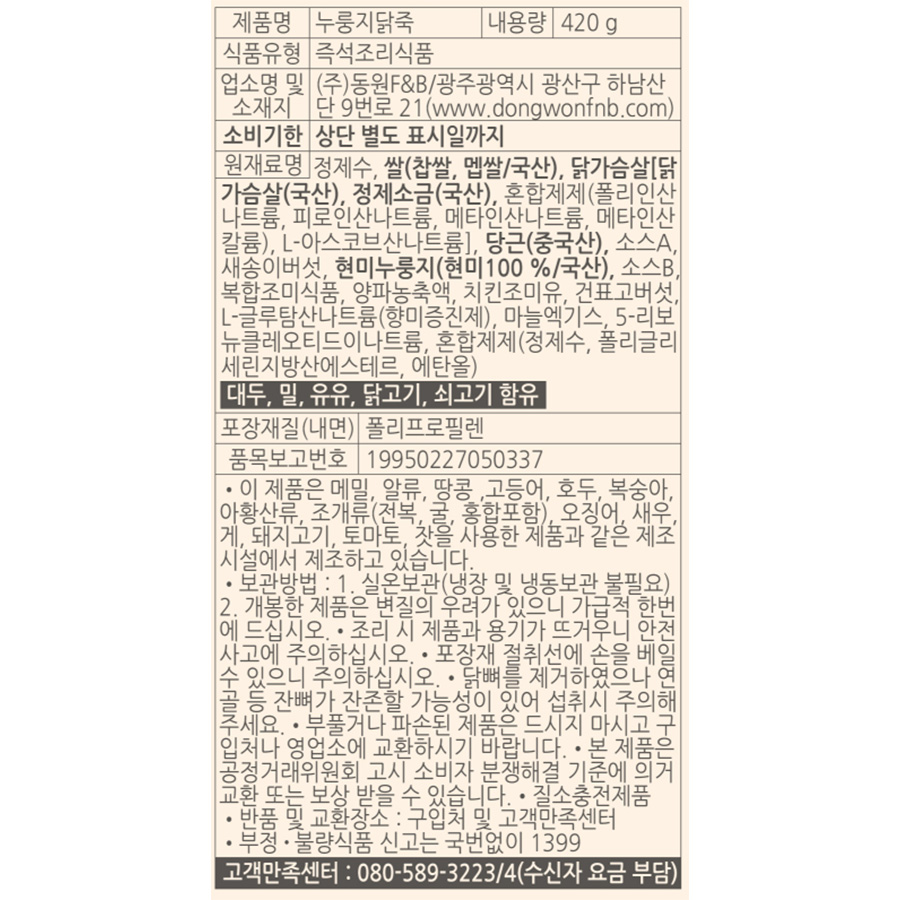 양반죽 누룽지닭죽(파우치 420g/EA)