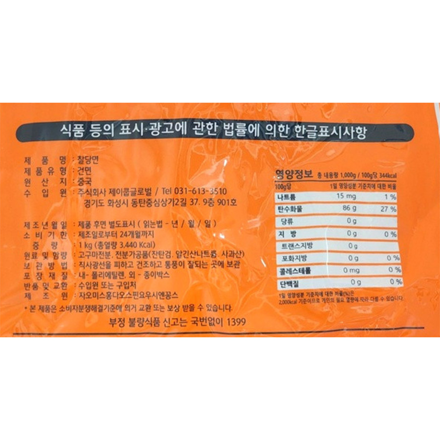 제이쿱글로벌 찰당면(1Kg/EA) 이미지