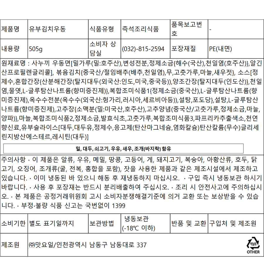유부듬뿍김치우동(밀키트_원팩_FC 505g/EA)