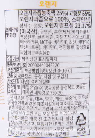 매일 테너베이스 오렌지 1.2kg 냉장 이미지